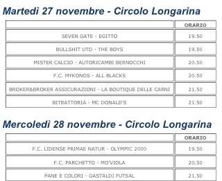 Le ultime La quinta giornata 26 novembre 2012 olympic1989 Lascia un commento Da domani sera inizia la quinta giornata di campionato. Parecchie la gare interessanti. Vota:Condividi:Mi piace Caricamento...