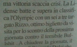Le ultime Tre righe 1 dicembre 2012 olympic1989 Lascia un commento Ecco alcuni stralci dell’articolo dedicato al torneo di Apertura dal Giornale di Ostia. Molto risalto chiaramente è stato dato alle formazioni che hanno riportato la vittoria mentre all’Olympic viene dedicato solo un piccolo spazio di tre righe. Vota:Condividi:Mi piace Caricamento...