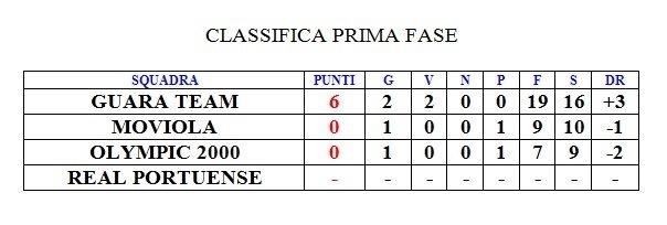 In Challenge invece l’Olympic occupa il terzo posto in classifica. Ieri sera il Guara Team ha ottenuto la seconda vittoria consecutiva contro il Moviola che esordiva nelle competizione proprio ieri.