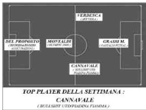 Per chiudere facciamo i complimenti a Simone Montaldi che con la prestazione di ieri ha meritato di entrare nel Top Five settimanale del torneo. Che intenzioni ha SM7? Vuole puntare alla Pigna d’Oro e alla Scarpa d’Oro?!?