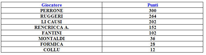 Questi punti vengono poi moltiplicati per il numero di gare viste dall’elettore quindi questo mese per esempio il primo nome di Fantini, che ha visto 4 partite su 4, vale 40 punti mentre il primo nome di Rencricca, che ne ha viste 3, vale 30 e così via.