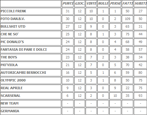 Per chiudere ecco la classifica del torneo Apertura dopo il dodicesimo turno: all’Olympic sono stati attribuiti tre punti dopo la vittoria a tavolino contro la New Team.