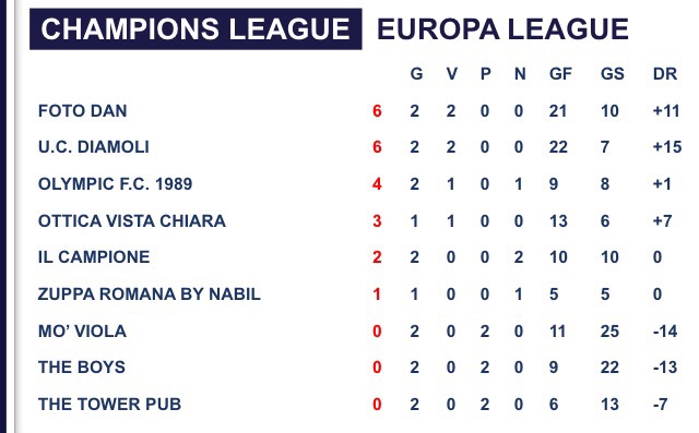 L’Olympic è al terzo posto in classifica del girone di Champions League e si prepara al terzo turno con una rinnovata situazione d’emergenza. La settimana scorsa la vittoria contro il The Tower’s Pub era arrivata anche grazie ai rientri di Formica, Ciuffa e Rencricca mentre per lunedì si presenta di nuovo una situazione di allarme per quanto riguarda le convocazioni.