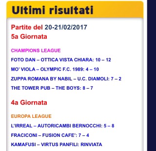 Finalmente l’organizzazione del torneo ha pubblicato la classifica ufficiale del torneo e quindi godiamoci la vista dell’Olympic davanti a tutte le partecipanti alla Champions League anche se è solo una questione di ordine alfabetico. Possiamo anche constatare che i nostri prossimi avversari, l’Ottica Vista Chiara, sono stati i primi a battere il temibile Foto Dan anche se è stata una partita in cui la difesa dei neri ha lasciato parecchi varchi all’attacco romeno. Potrebbe essere una buona chiave di lettura e l’Olympic potrebbe sfruttare il suo contropiede per infliggere danni all’Ottica.