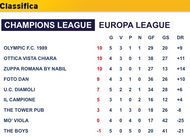 Finalmente l’organizzazione del torneo ha pubblicato la classifica ufficiale del torneo e quindi godiamoci la vista dell’Olympic davanti a tutte le partecipanti alla Champions League anche se è solo una questione di ordine alfabetico. Possiamo anche constatare che i nostri prossimi avversari, l’Ottica Vista Chiara, sono stati i primi a battere il temibile Foto Dan anche se è stata una partita in cui la difesa dei neri ha lasciato parecchi varchi all’attacco romeno. Potrebbe essere una buona chiave di lettura e l’Olympic potrebbe sfruttare il suo contropiede per infliggere danni all’Ottica.