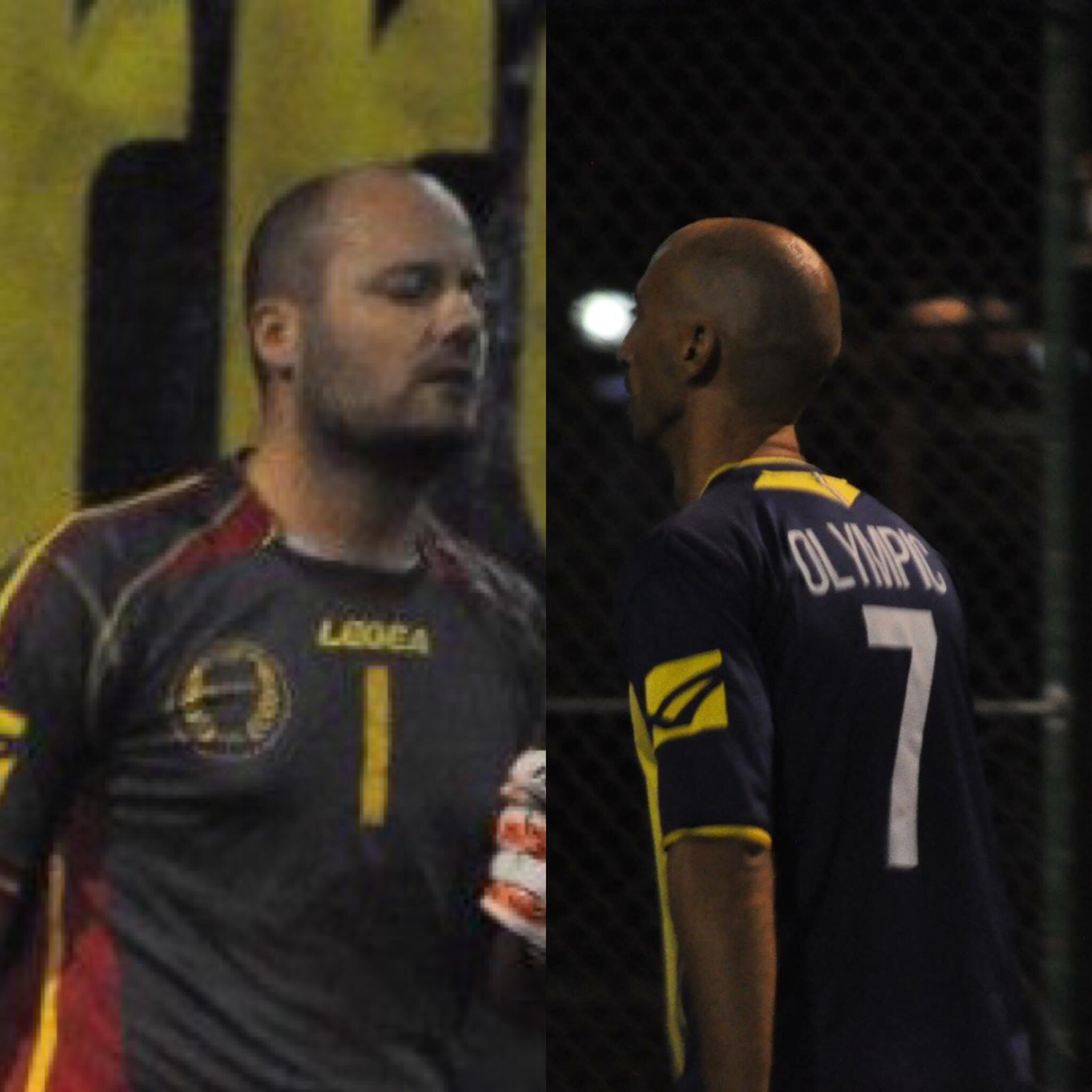 Olympic in campo con maglia verde, pantaloncini gialli e calzettoni blu.