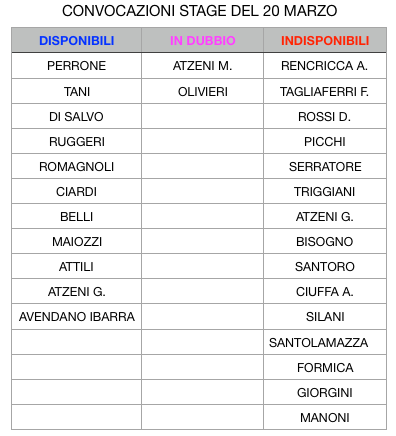 Nel frattempo ecco i convocati per lo stage a due giorni dall’incontro che si giocherà all’Honey.