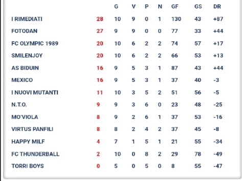 L’organizzazione della Winter Cup ha aggiornato il proprio sito con la classifica e i risultati della decima giornata. Purtroppo ci sono molte gare da recuperare quindi la classifica non è totalmente attendibile visto che su tredici formazioni solo sei hanno disputato tutti e dieci gli incontri.