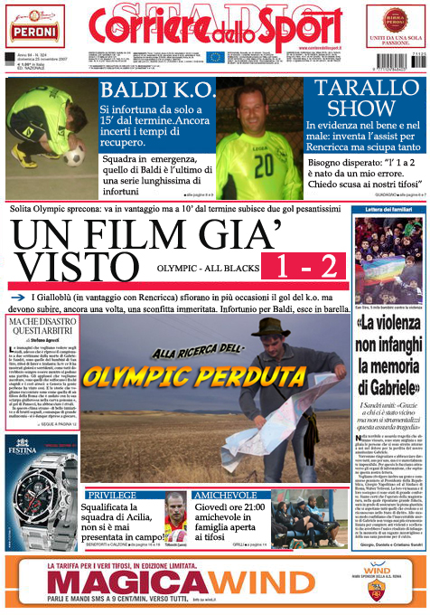 E’ il 23 novembre del 2007, l’Olympic gioca la sesta giornata della Spazio Design Cup al Kristall e affronta i forti All Blacks. All’ultimo momento i gialloblù devono rinunciare agli infortunati Sacchi e Belli e in extremis viene chiamato Tarallo che si unisce alla formazione composta da Perrone, Santolamazza, Rencricca, Bisogno e Baldi.