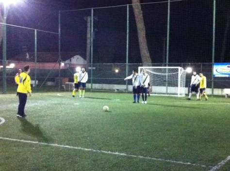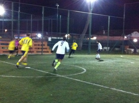 I gialloblù schieravano Belli in porta, Rencricca in difesa, Perrone e Bisogno a centrocampo e Fantini e Fabio Tagliaferri in attacco. Al fischio d’inizio non c’è Rencricca, bloccato nel traffico impazzito a causa del diluvio che sta investendo la capitale da alcune ore. Il campo del Kristall è una risaia ma le due formazioni accettano di giocare.