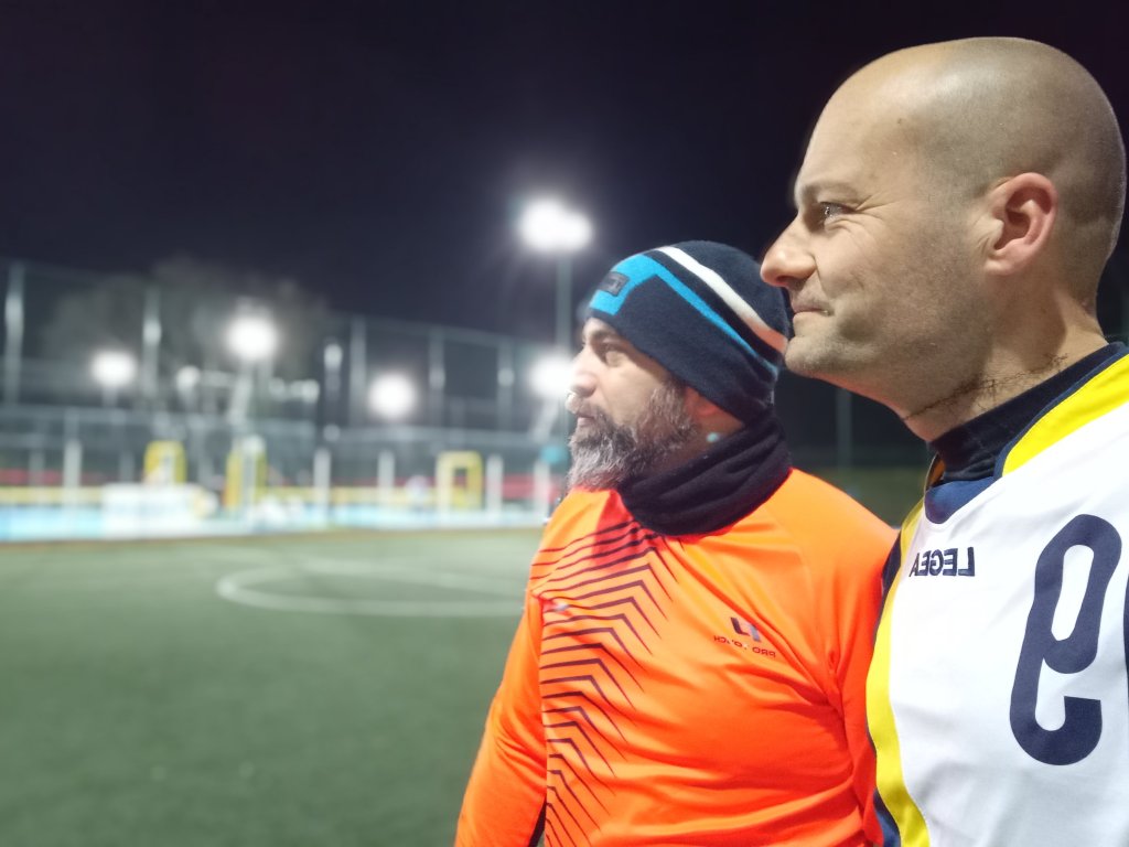 La storia infinita di questa partita comincia alle sei del mattino con il forfait di Emiliano Belli e prosegue con la ricerca di un sostituto dell’ultimo minuto. Gianluca Bisogno è ancora ko e Stefano Romagnoli è indisponibile: si decide di andare in sei. Oltre ai problemi di formazione poi c’è stata la situazione meteo con la pioggia che cadeva su Roma dalle prime luci dell’alba fino al tramonto e oltre. Verso le venti e trenta le squadre arrivano al campo che tiene bene nonostante le ore di pioggia. Si comincia con il riscaldamento e dopo pochi minuti accade l’imprevisto: l’impianto di illuminazione va in corto circuito e l’Eschilo2 cade nell’oscurità. I manutentori procedono con vari tentativi ma ogni volta vengono frustrati da un nuovo blackout. Alle ventuno e trenta si decide per un ultimo tentativo prima di rinviare la partita e stavolta l’impianto sembra tenere, si gioca!