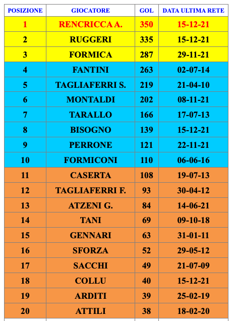 - ALESSANDRO RENCRICCA, 357 GOL