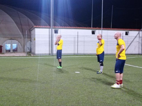 Ieri sono scese in campo la squadra verde formata da Perrone, Santoro, Forcellese, Pizzoni e Rossi e la squadra in maglia oro in cui giocavano Belli, Romagnoli, Mosetti, Tarallo, Tagliaferri e Gennari. Il primo tempo è stato dominato dai verdi che con Santoro e Forcellese a fare gioco schiacciavano gli avversari nella loro area di rigore. Anche i verdi creavano qualcosa ma Gennari era in versione sprecone e Perrone parava i pochi tiri che inquadravano lo specchio della sua porta.