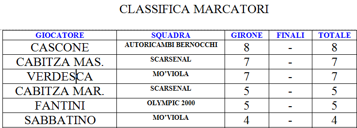 Nella seconda partita arrivava poi l’inaspettata vittoria contro il Mo’viola e nonostante i cinque gol presi la difesa, rafforzata da Formiconi e da un Li Causi sempre più decisivo, appariva decisamente in crescita. Una settimana fa invece c’era terza partita, quella contro il Bernocchi. Un match strano in cui l’Olympic è apparsa deconcentrata forse perchè grazie alla larga vittoria del Mo’viola sullo Scarsenal ci sarebbe voluto un miracolo al contrario per non qualificarsi alla finale. Anche qui arrivava un gol nel finale, quasi nel recupero, di Fantini e la squadra si classificava seconda nel girone guadagnando la finale.