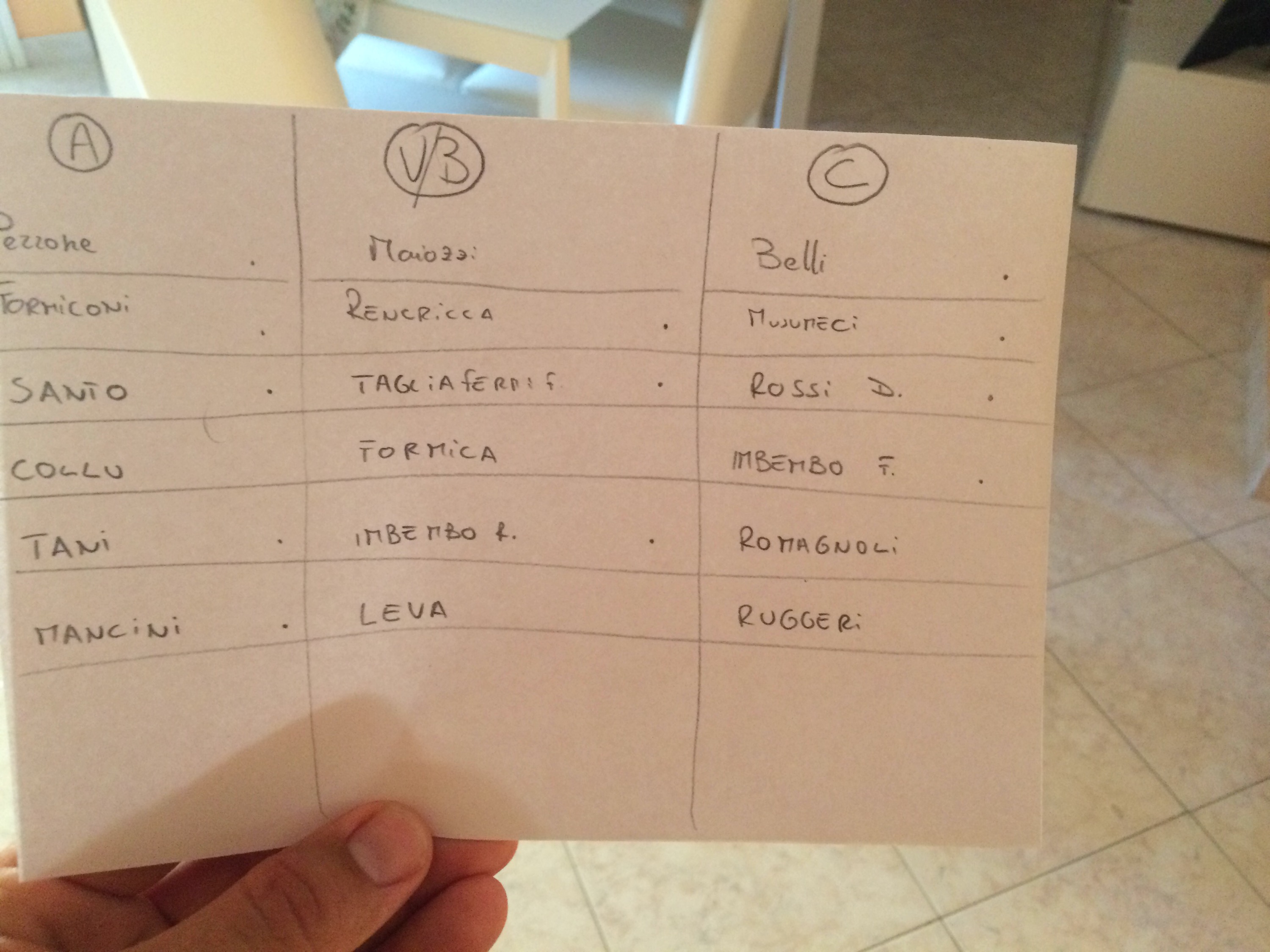 L’ultima formazione, il Team C, era composta invece da Belli, Musumeci, Romagnoli, Ruggeri, Fabio Imbembo e da Bisogno che all’ultimo momento sostitutiva Daniele Rossi. Ecco la cronaca dei tre mini incontri da 30 minuti del triangolare.