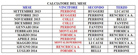 Chiudiamo l’aggiornamento di oggi con una chicca di fine anno. Qui di seguito trovate tutti i podi del premio del giocatore del mese da settembre 2013 (data di inizio dell’attuale sistema di premiazione) a oggi. Godetevi questa carrellata di campioni (alcuni ce li siamo proprio dimenticati!).