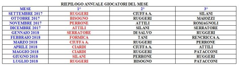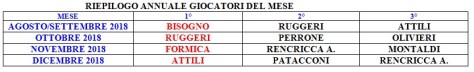 Attili quindi ottiene l’ultimo premio di giocatore del mese per questo 2018 e sale per la seconda volta sul podio dopo il terzo posto ottenuto nella votazione combinata di agosto e settembre. In totale in questa stagione sono saliti sul podio nove giocatori e di questi tre l’hanno fatto per tre volte (Ruggeri, Attili e Rencricca).