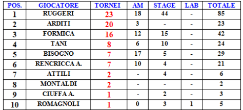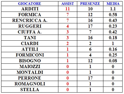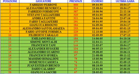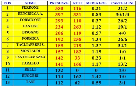 | GIOCATORE | PRESENZE DA CAPITANO |