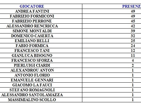 Una annotazione per i giocatori che hanno vestito la fascia di capitano in queste partite: in cima alla classifica troviamo chiaramente Perrone e Rencricca, rispettivamente con 49 e 29 fasce ma dopo di loro ci sono Santolamazza (8), Bisogno (6), Formiconi e Fabio Tagliaferri (5).