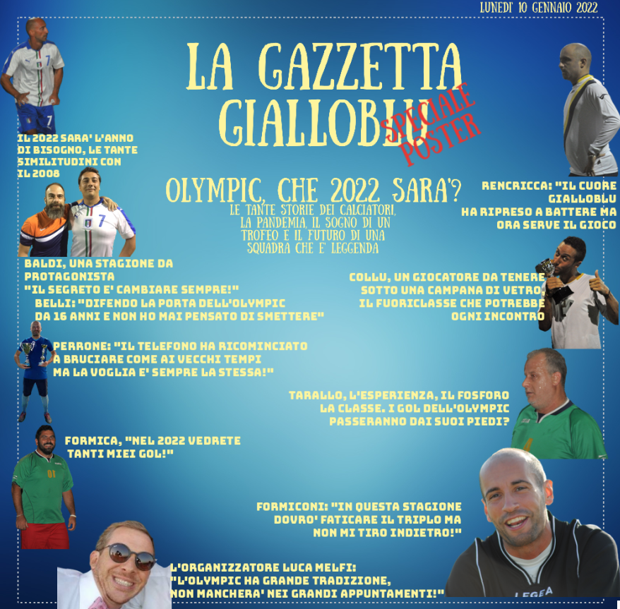 Nel frattempo l’Olympic tornerà in campo mercoledì 19 gennaio per un’altra amichevole per la quale ieri sono partite le convocazioni. Al momento i giocatori confermati sono Fabrizio Perrone, Emiliano Belli, Gregorio Triggiani, Stefano Romagnoli, Fabrizio Formiconi, Gianmaria Santoro e Filiberto Tarallo. Altre risposte sono attese per domani mattina.