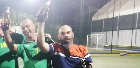 Il secondo tempo era molto più equilibrato perchè la squadra verde rallentava un po’ dopo aver segnato il sesto gol e Tarallo e compagni si mettevano decisamente meglio in campo mostrando meno il fianco ai contropiedi avversari. Finiva 7 a 5 per i verdi che nel finale subivano qualche gol balordo per la necessità di schierare l’infortunato Rossi in porta e Perrone a dargli in cambio in avanti.